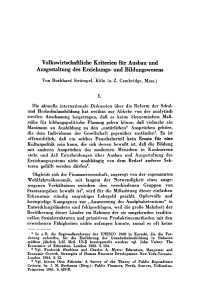 Volkswirtschaftliche Kriterien für Ausbau und Ausgestaltung des Erziehungs- und Bildungswesens