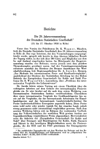 Die 29. Jahresversammlung der Deutschen Statistischen Gesellschaft (15. bis 17. Oktober 1958 in Köln)