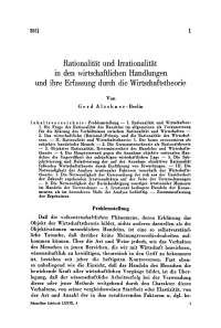 Rationalität und Irrationalität in den wirtschaftlichen Handlungen und ihre Erfassung durch die Wirtschaftstheorie