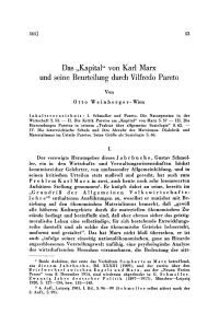 Das „Kapital“ von Karl Marx und seine Beurteilung durch Vilfredo Pareto