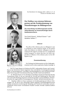 Die Auswirkung von Referenzpreisen auf die Wahrnehmung von Semesterbeiträgen durch Studieninteressierte.Der Betriebswirt, Vol. 64 (2023), Iss. 1 : pp. 37–45 | First published online: July 05, 2023