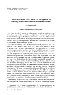 Das Verhältnis von Markt und Staat: Sozialpolitik aus der Perspektive der Pluralen Institutionenökonomik