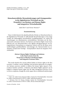 Menschenrechtliche Herausforderungen und Lösungsansätze in der digitalisierten Wirtschaft aus der Perspektive von Business and Human Rights und integrativer Wirtschaftsethik