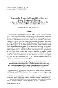 Corporate Involvement in Human Rights Abuse and German Companies in Xinjiang: A Case for Introducing ‘Structural Complicity’ in the Business Ethics and Human Rights Discourse