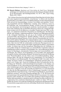 Henryk Ditchen: Akademien und Universitäten der Stadt Posen. Hochschulgründungen im Umfeld der deutsch-polnischen Beziehungen (Stuttgarter Beiträge zur Wissenschafts- und Technikgeschichte, 19).