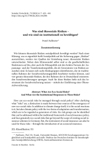 Was sind ökosoziale Risiken – und wie sind sie institutionell zu bewältigen?