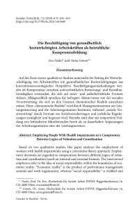Die Beschäftigung von gesundheitlich beeinträchtigten Arbeitskräften als betriebliche Kompromissbildung