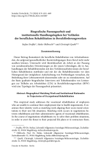 Biografische Passungsarbeit und institutionelle Handlungslogiken bei Verläufen der beruflichen Rehabilitation in Berufsförderungswerken