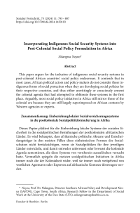 Incorporating Indigenous Social Security Systems into Post-Colonial Social Policy Formulation in Africa