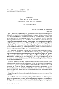 Betrachtungen achzig Jahre nach AuschwitzZeitschrift für Lebensrecht, Vol. 33 (2024), Iss. 1-2 : pp. 1–4 | First published online: December 20, 2024