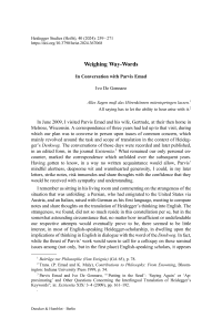 In Conversation with Parvis EmadHeidegger Studies / Heidegger Studien / Etudes Heideggeriennes / Studi Heideggeriani, Vol. 40 (2024), Vol. 40 (2024), Issue 0 : pp. 259–272 | First published online: December 10, 2024