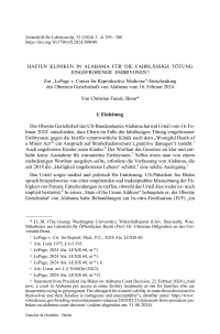 Zur „LePage v. Center for Reproductive Medicine“-Entscheidung des Obersten Gerichtshofs von Alabama vom 16. Februar 2024Zeitschrift für Lebensrecht, Vol. 33 (2024), Iss. 3-4 : pp. 295–308 | First published online: March 05, 2025