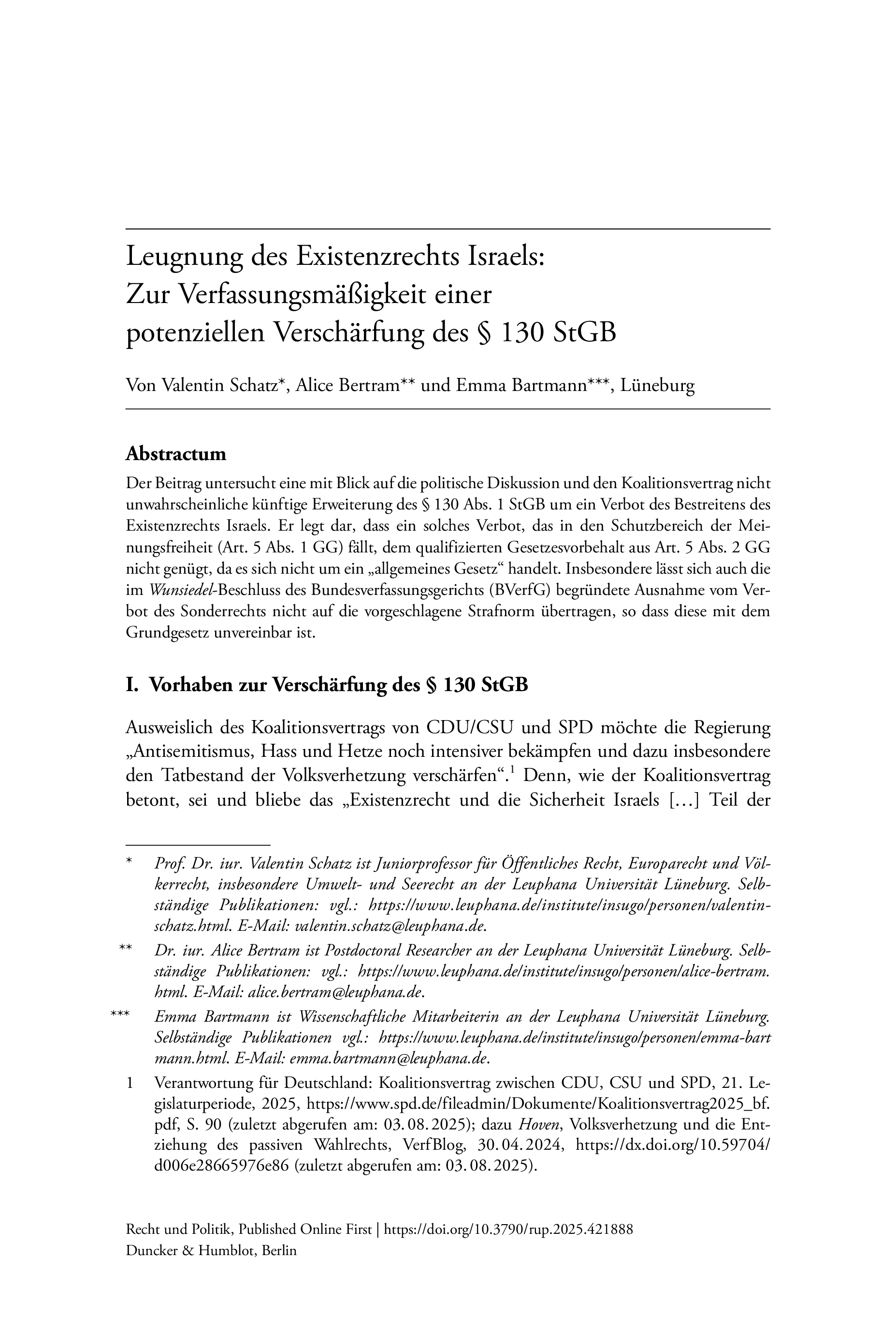 Leugnung des Existenzrechts Israels: Zur Verfassungsmäßigkeit einer potenziellen Verschärfung des § 130 StGB