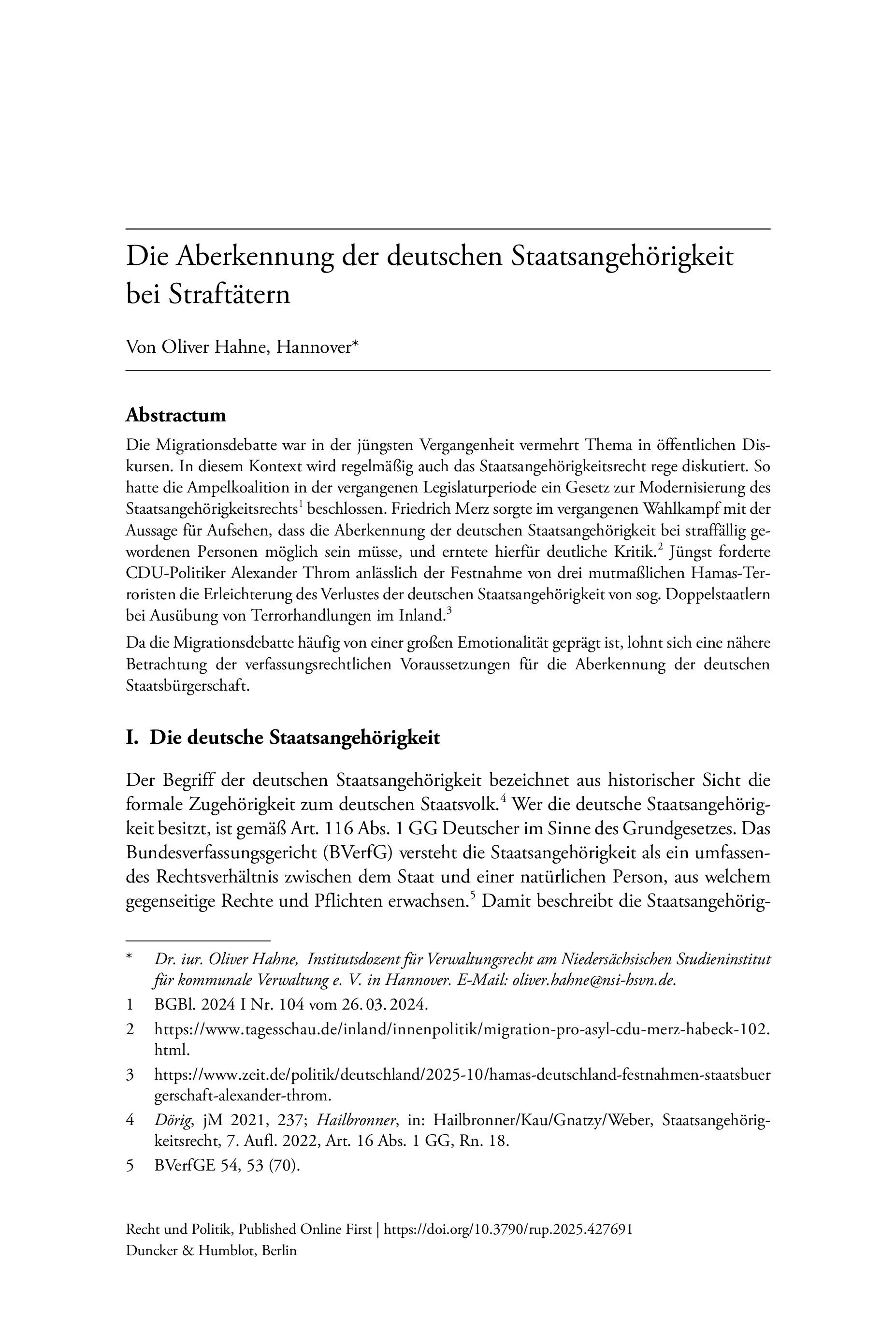 Die Aberkennung der deutschen Staatsangehörigkeit bei Straftätern