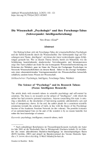 Die Wissenschaft „Psychologie“ und ihre Forschungs-Tabus (Schwerpunkt: Intelligenzforschung)