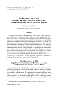 Die Bedrohung durch EDI (Equality, Diversity, Inclusion): Redefreiheit, Wissenschaftsfreiheit und der Wert der Wahrheit