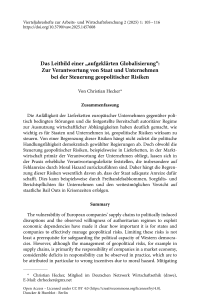 Das Leitbild einer „aufgeklärten Globalisierung“: Zur Verantwortung von Staat und Unternehmen bei der Steuerung geopolitischer Risiken