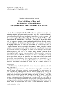 Hegel’s Critique of Law and the Pathology of Juridification: A Hegelian Social Theory of Justice as a Remedy