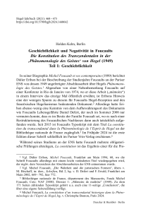 Geschichtlichkeit und Negativität in Foucaults „Die Konstitution des Transzendentalen in der ‚Phänomenologie des Geistes‘ von Hegel“ (1949). Teil I: Geschichtlichkeit