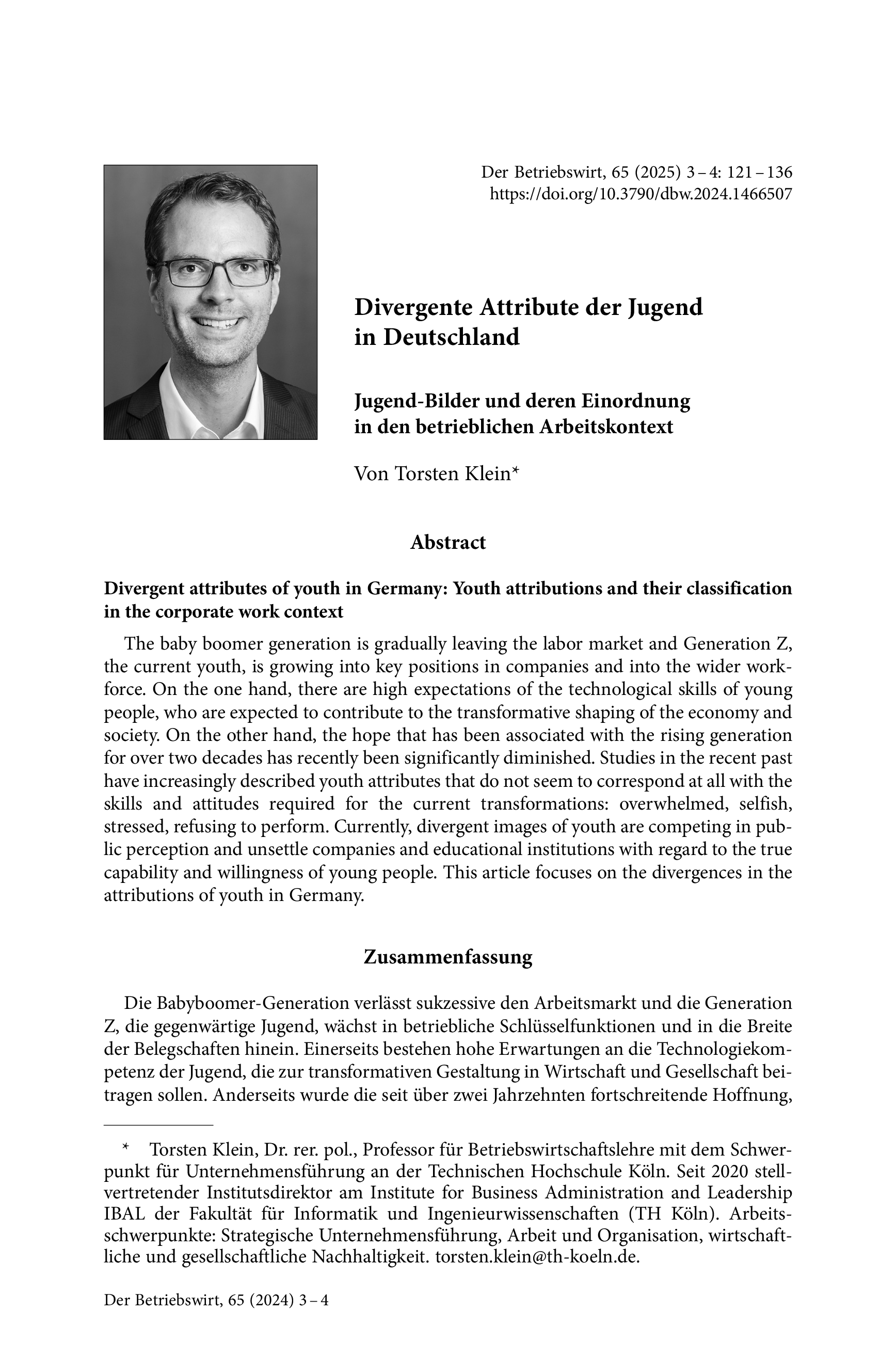 Jugend-Bilder und deren Einordnung in den betrieblichen ArbeitskontextDer Betriebswirt, Vol. 65 (2024), Iss. 3–4 : pp. 121–136 | First published online: October 10, 2025