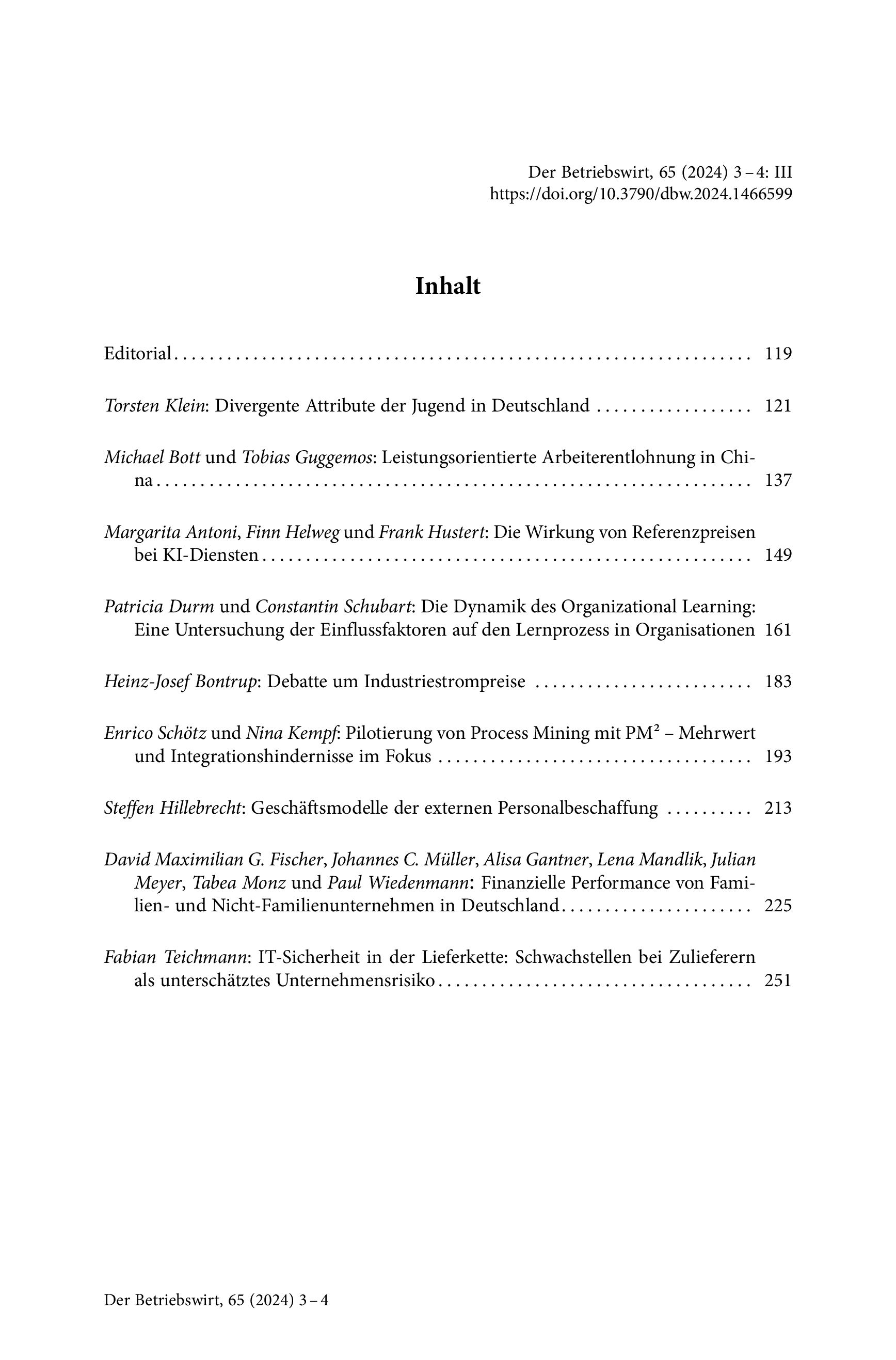 Der Betriebswirt, Vol. 65 (2024), Iss. 3–4 : pp. 119–120 | First published online: October 10, 2025