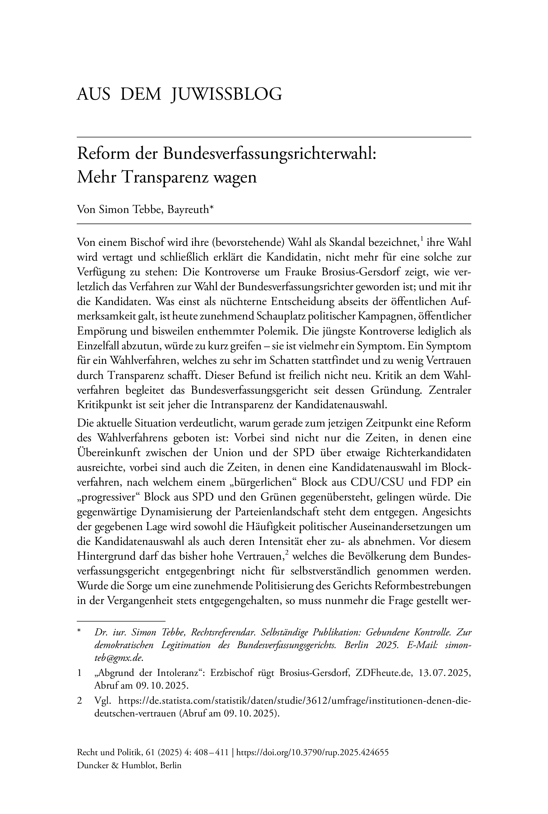 Recht und Politik, Vol. 61 (2025), Iss. 4 : pp. 408–411 | First published online: December 15, 2025