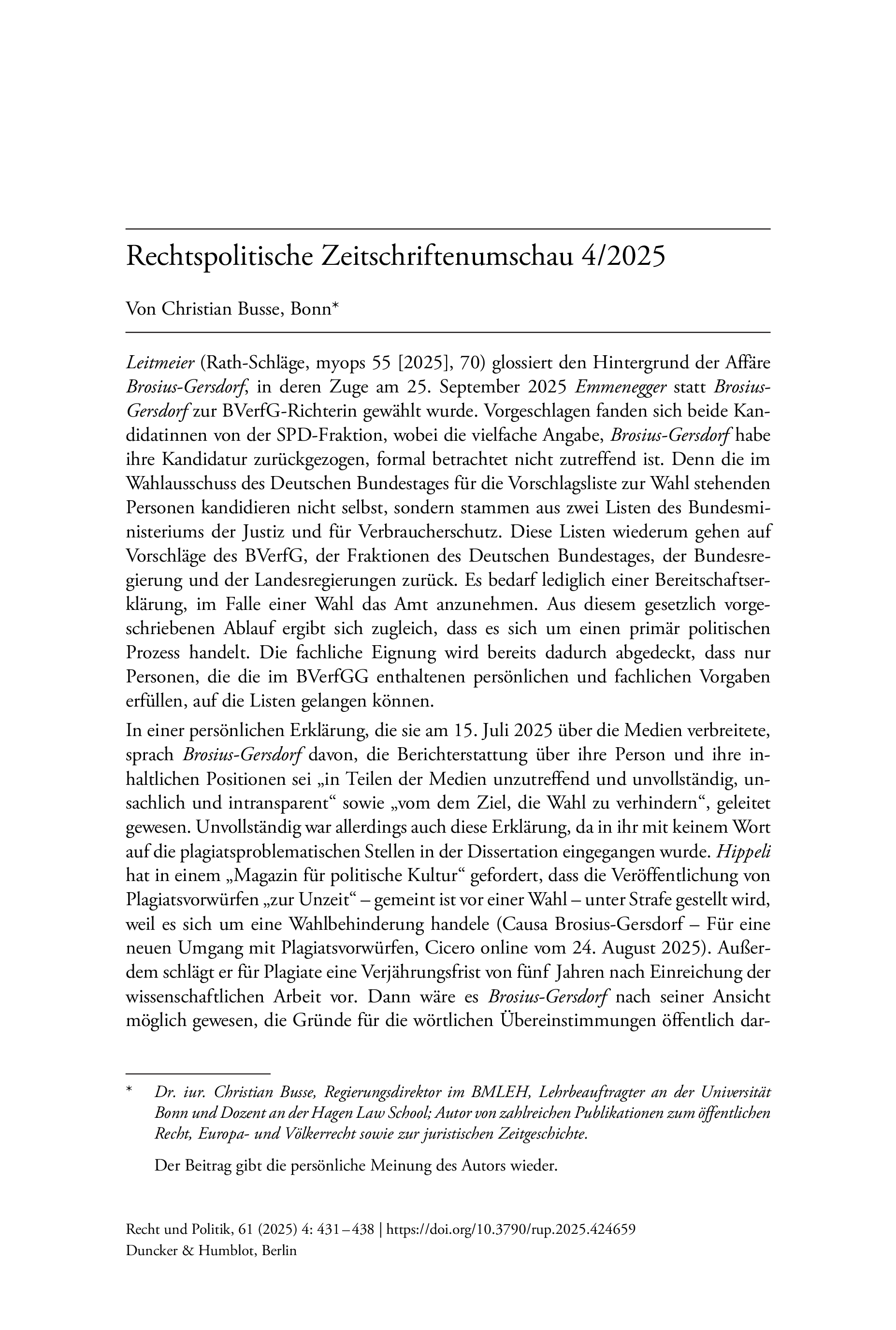 Recht und Politik, Vol. 61 (2025), Iss. 4 : pp. 431–438 | First published online: December 15, 2025