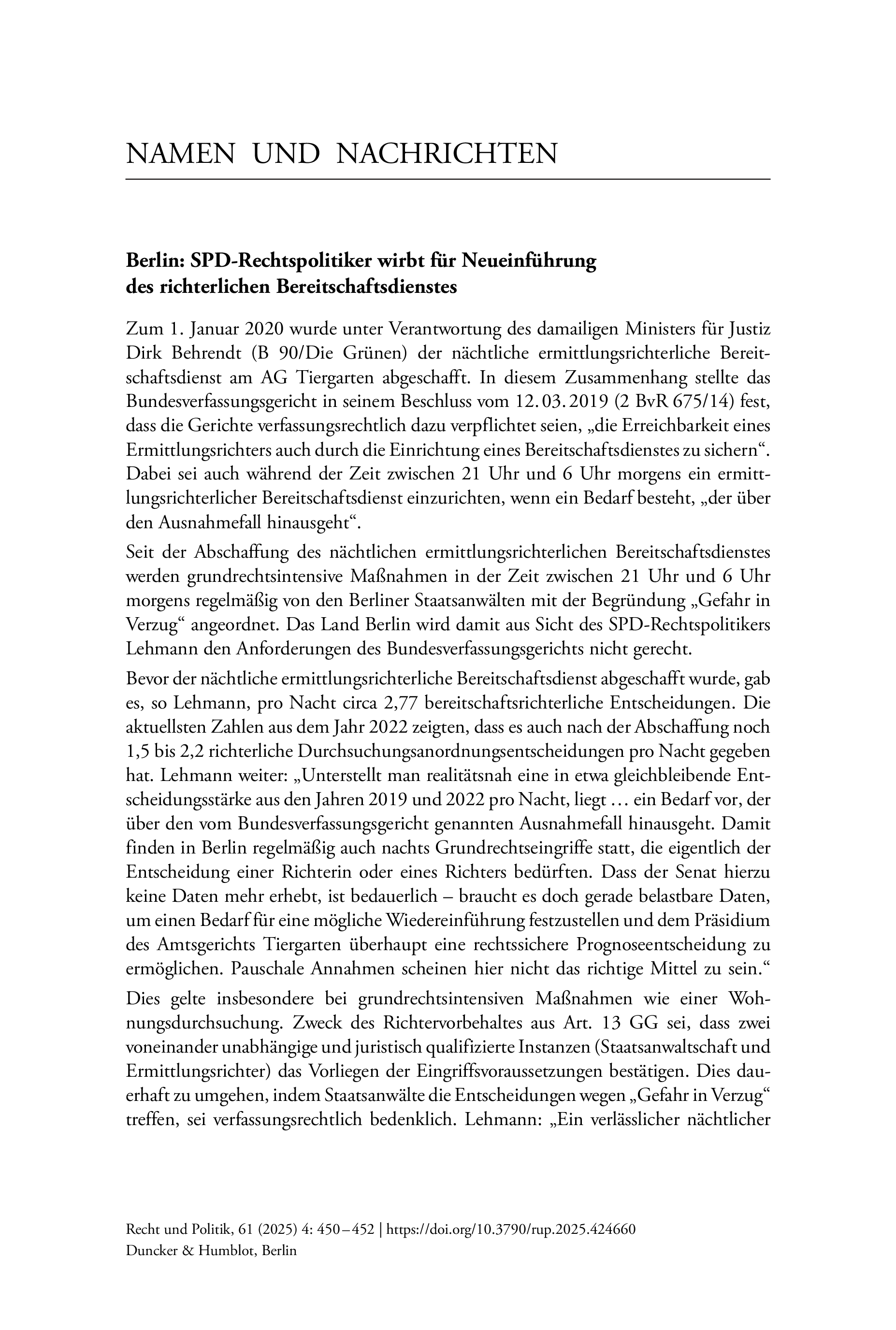 Recht und Politik, Vol. 61 (2025), Iss. 4 : pp. 450–452 | First published online: December 15, 2025