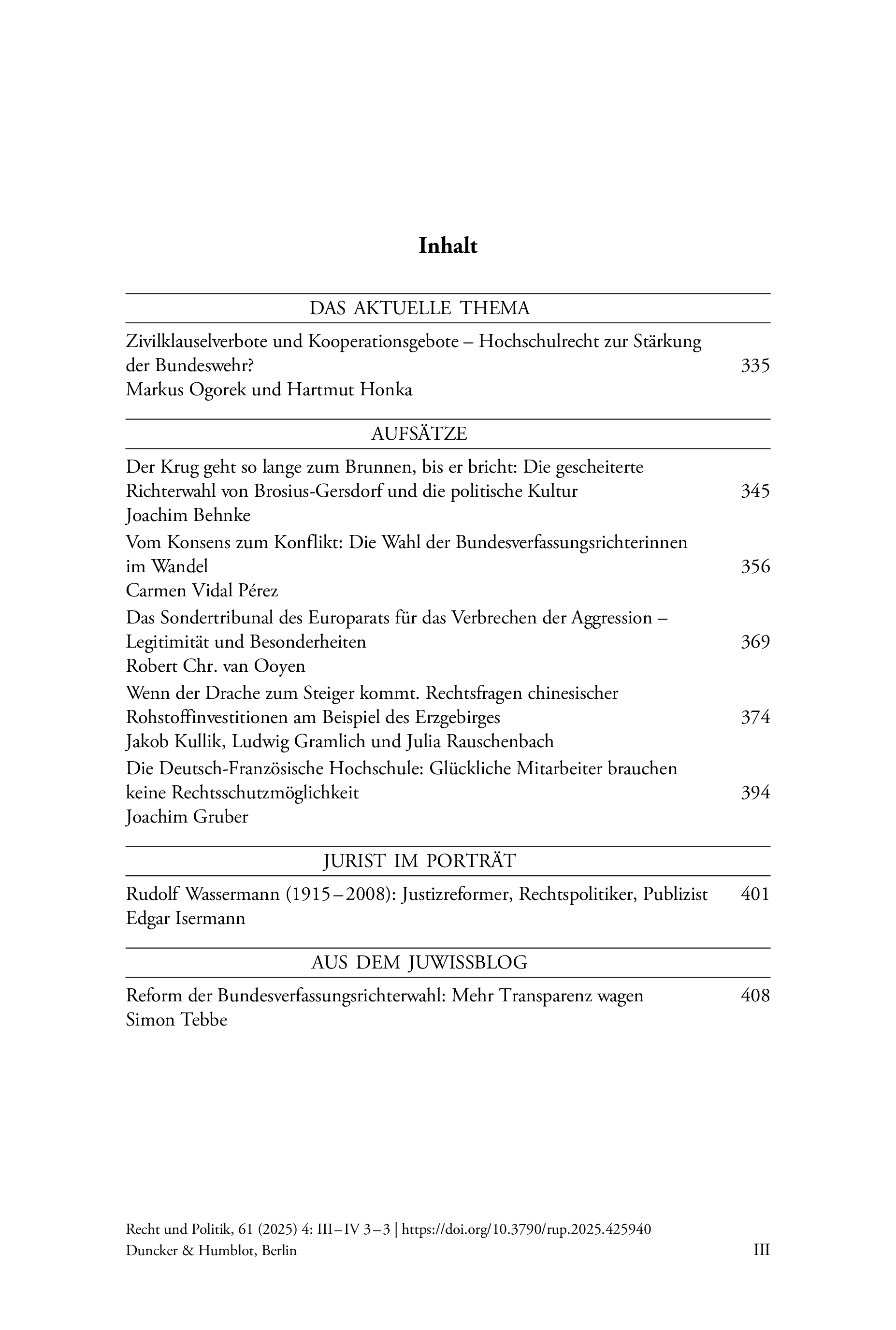 Recht und Politik, Vol. 61 (2025), Iss. 4 : pp. 3–4 | First published online: December 15, 2025