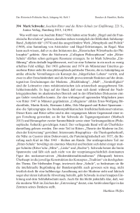 Mark Schweda: Joachim Ritter und die Ritter-Schule zur Einführung